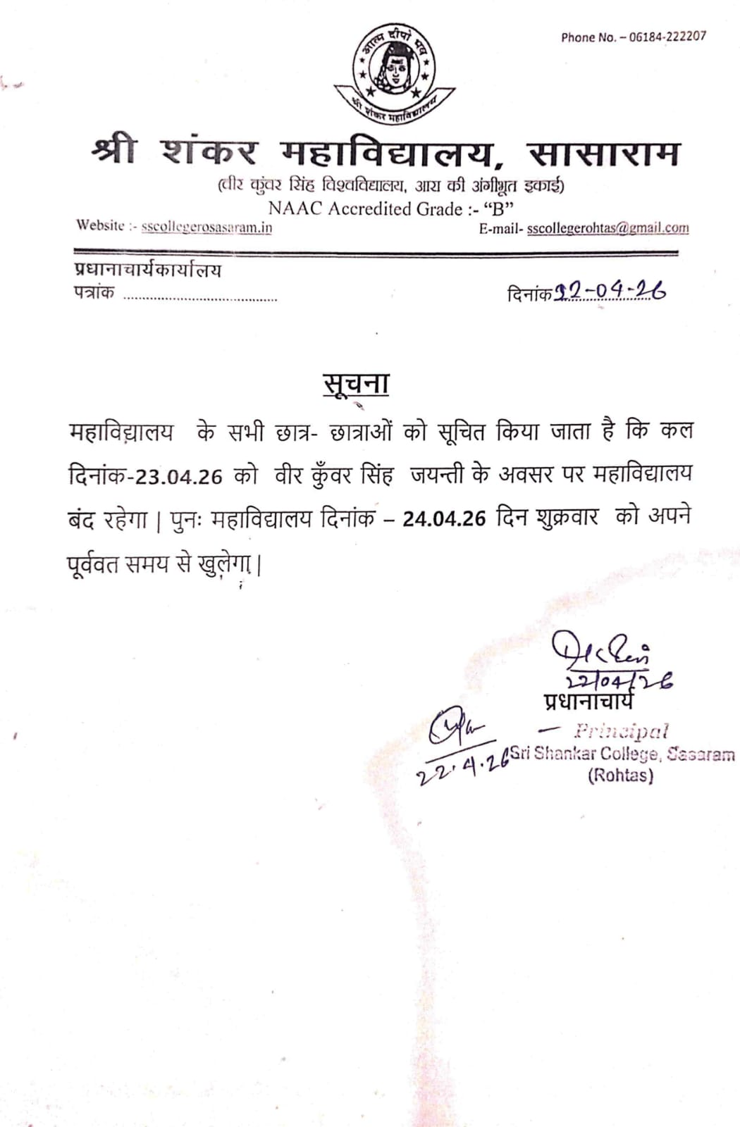 | 7 | 25-03-2026 | Regarding a Holiday on the Occasion of Smrat Ashok Jyanti(Ashtami) & Ramnavami |  |